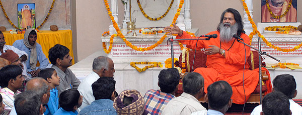 Sa Sainteté Vishwaguru Mahamandaleshwar Paramhans Sri Swami Maheshwarananda Puri de Panchayati Maha Nirvani Akhara, affectueusement surnommé Swamiji, est le disciple et successeur de Hindu Dharmsamrat Paramhans Sri Swami Madhavananda.